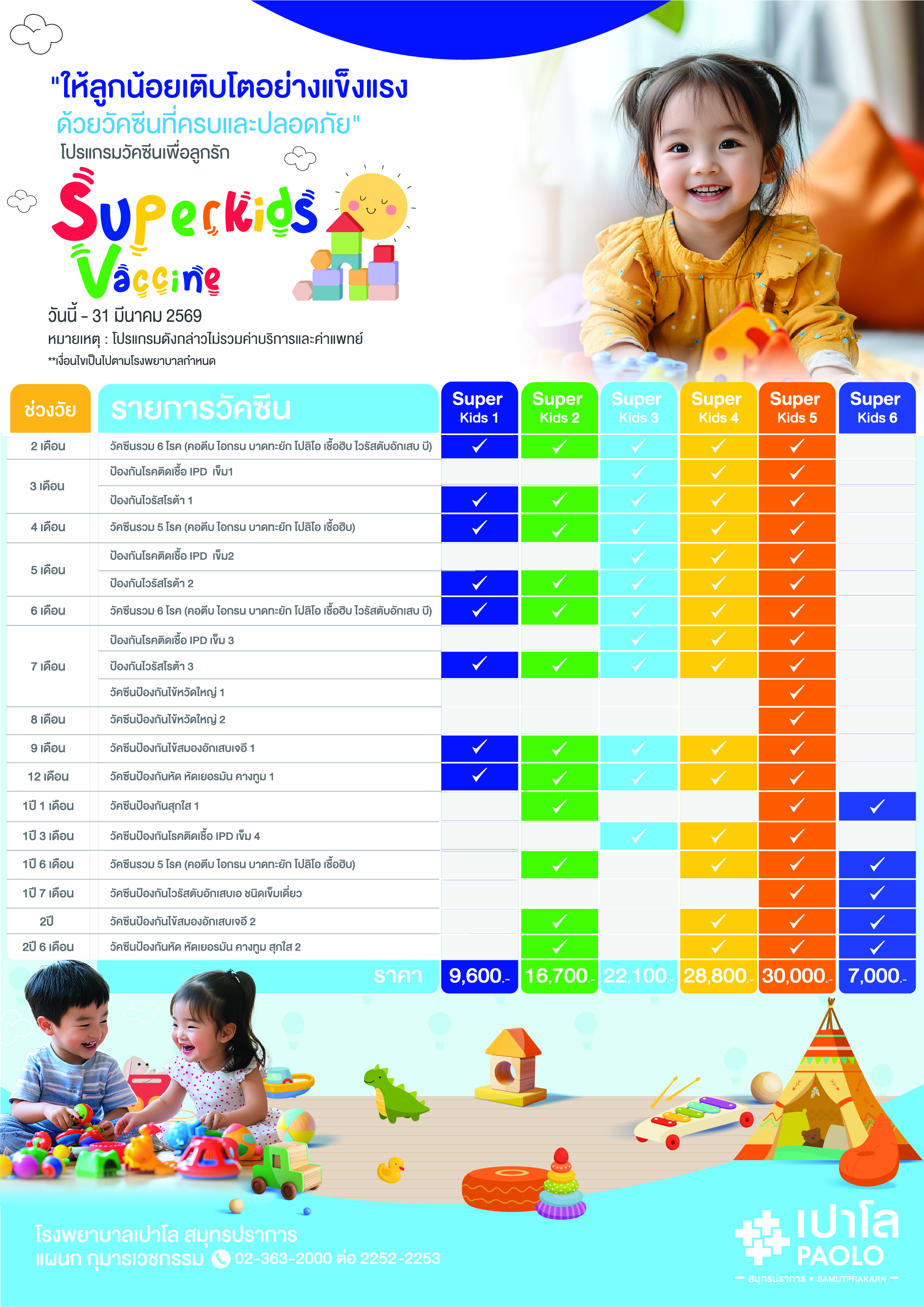 1. ราคาดังกล่าวไม่รวมค่าแพทย์และค่าบริการ