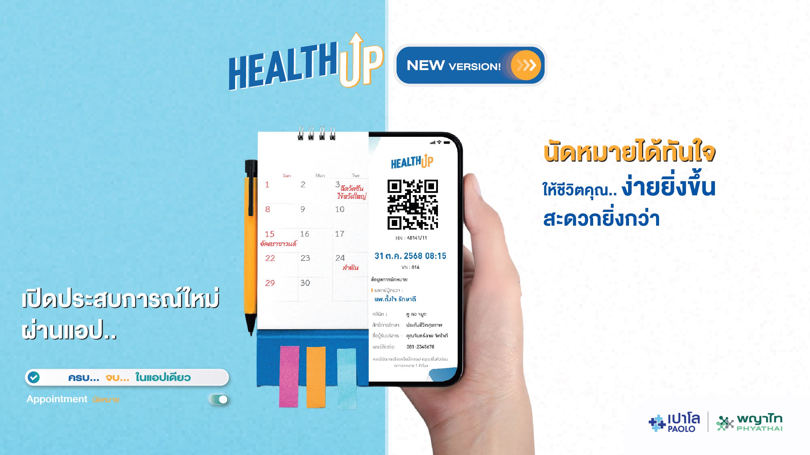 ผู้ใช้งานยุคใหม่ไม่ต้องเสียเวลาอีกต่อไป! เพราะวันนี้โรงพยาบาลเปาโล เกษตร พร้อมเปิดให้บริการผ่าน แอปพลิเคชัน HealthUp แล้ว แอปฯ เดียวที่ช่วยให้การดูแลสุขภาพเป็นเรื่องง่าย สะดวก และครบวงจรในปลายนิ้ว